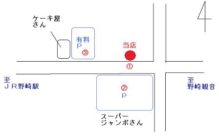 当店の向かいにある、スーパー・ジャンボさんの駐車場に止めていただくことができます。 ただし・・・・あくまでジャンボさんの駐車場ですので、あまり長時間の駐車はご遠慮ください。 また車を止めさせていただくお礼代わりに、ジャンボさんでお買い物でもどうぞ(^^)